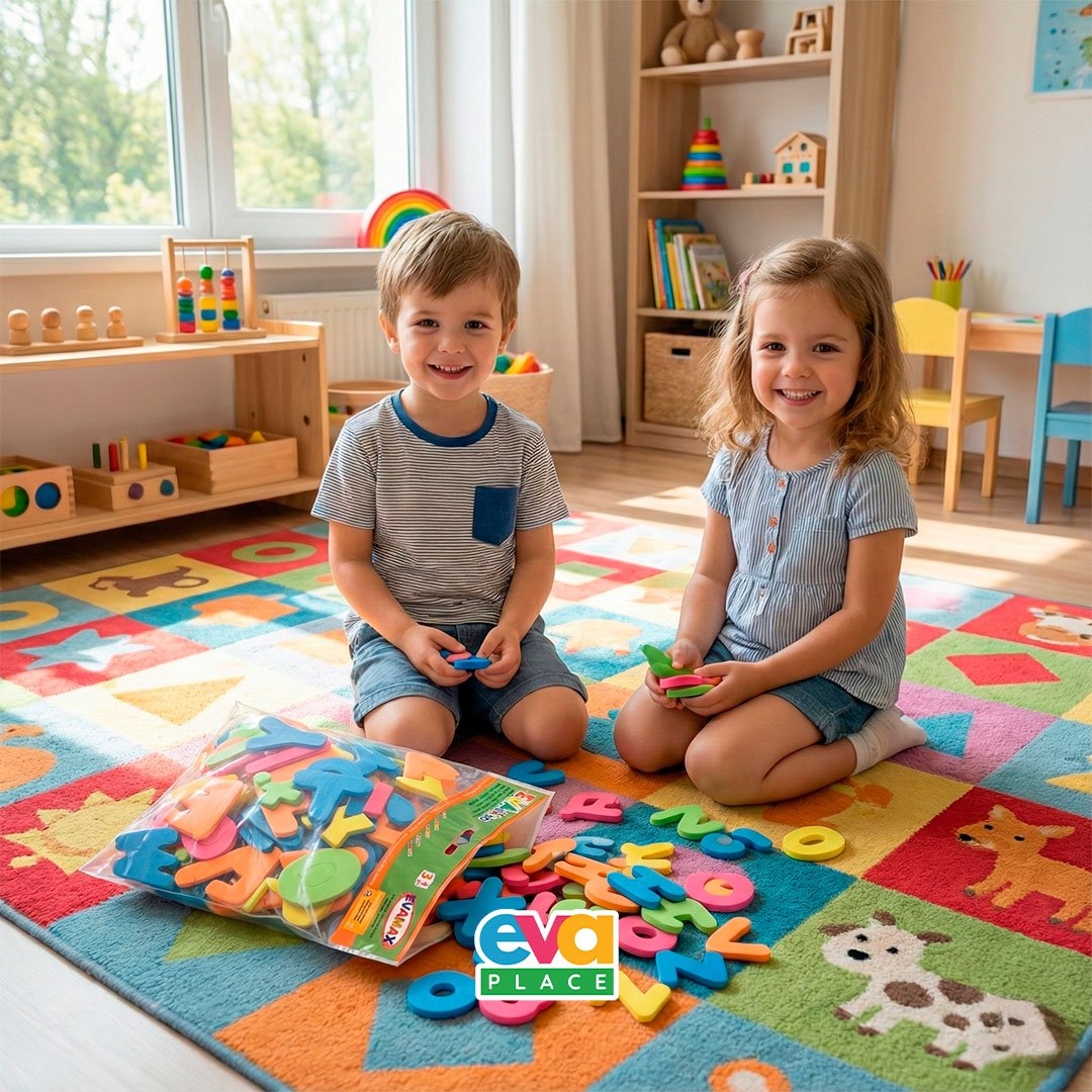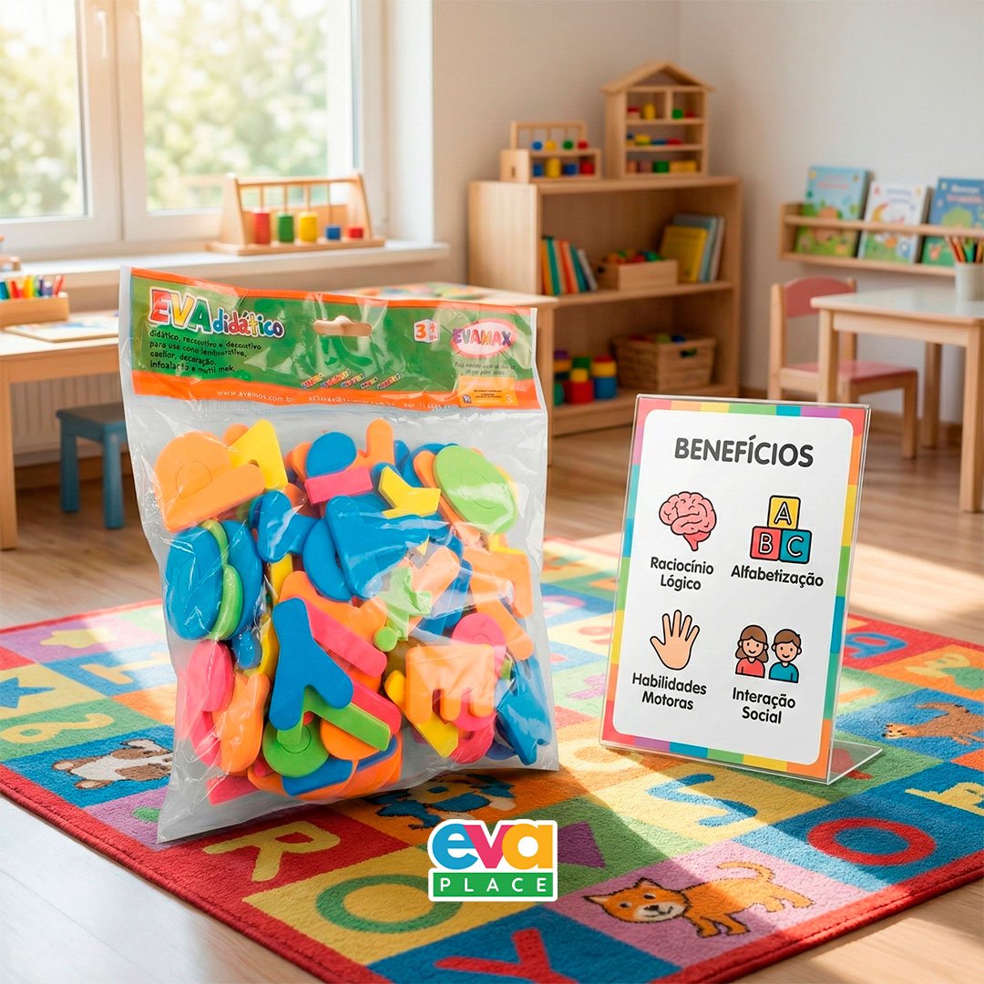 Produzido em EVA macio, leve e resistente, o kit é seguro para o uso infantil e indicado para educação infantil, escolas, creches, atividades pedagógicas e uso doméstico.