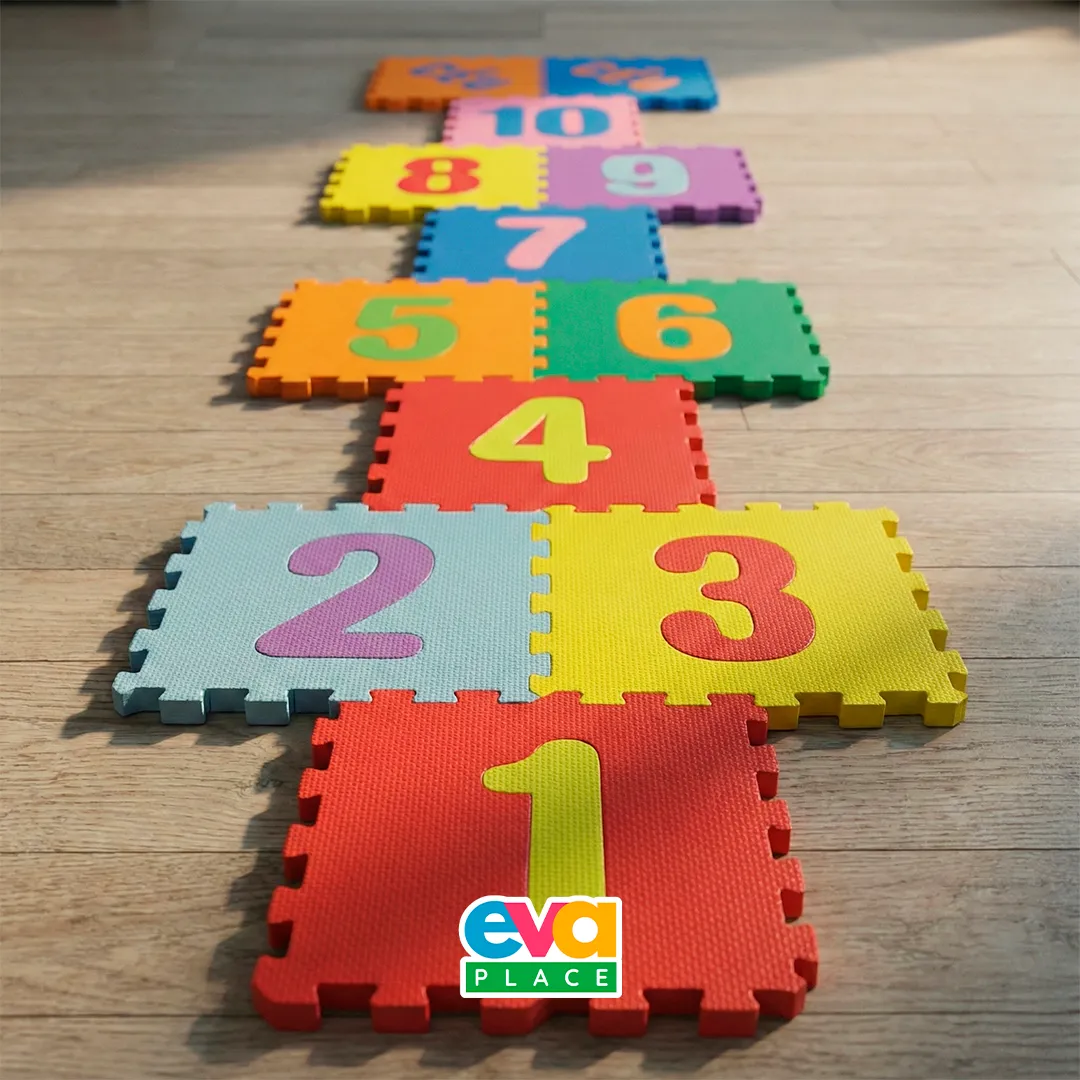 O tapete em EVA é leve, flexível e fácil de armazenar, podendo ser utilizado diretamente sobre pisos lisos. Seu visual colorido contribui para o estímulo visual e para atividades que envolvem coordenação motora, contagem e interação lúdica.