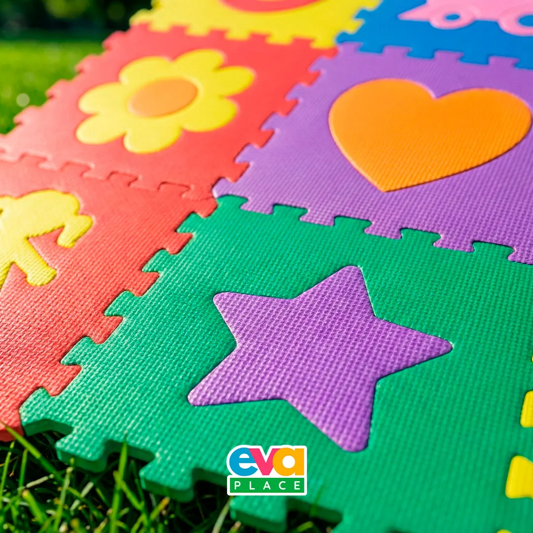 O tapete em EVA é leve, flexível e fácil de armazenar, podendo ser utilizado diretamente sobre pisos lisos. Seu visual colorido com figuras variadas contribui para atividades que envolvem reconhecimento visual, coordenação motora e interação lúdica.